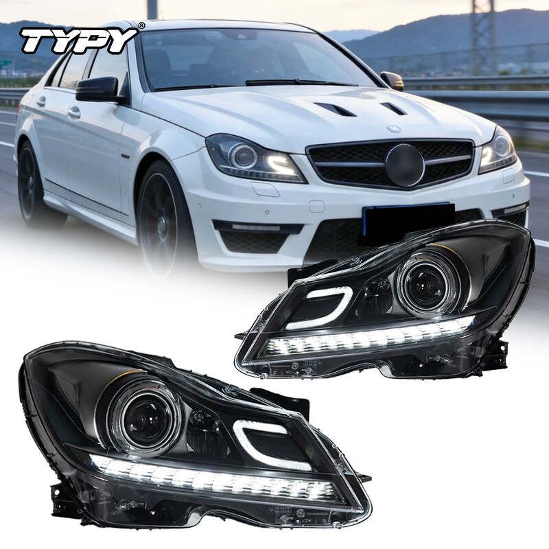 TYPY Car Headlights For Benz C-Class W204 Halogen Headlights 2011-2013, LED Car Lamps Daytime Running Lights Dynamic Turn Signals Car Accessories
