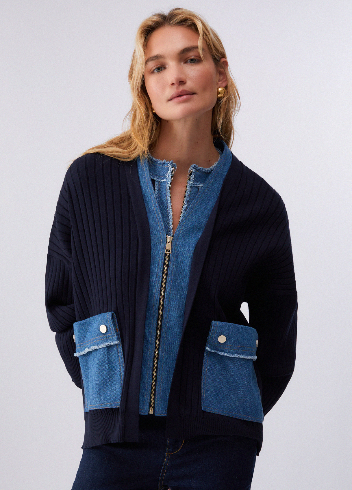Liu Jo Gestreifter Cardigan, Dunkles Denimblau, XXXL