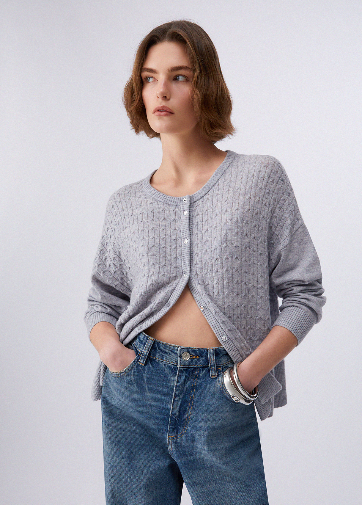 Liu Jo Zopfmuster-cardigan Aus Wolle, Perlgrau, S