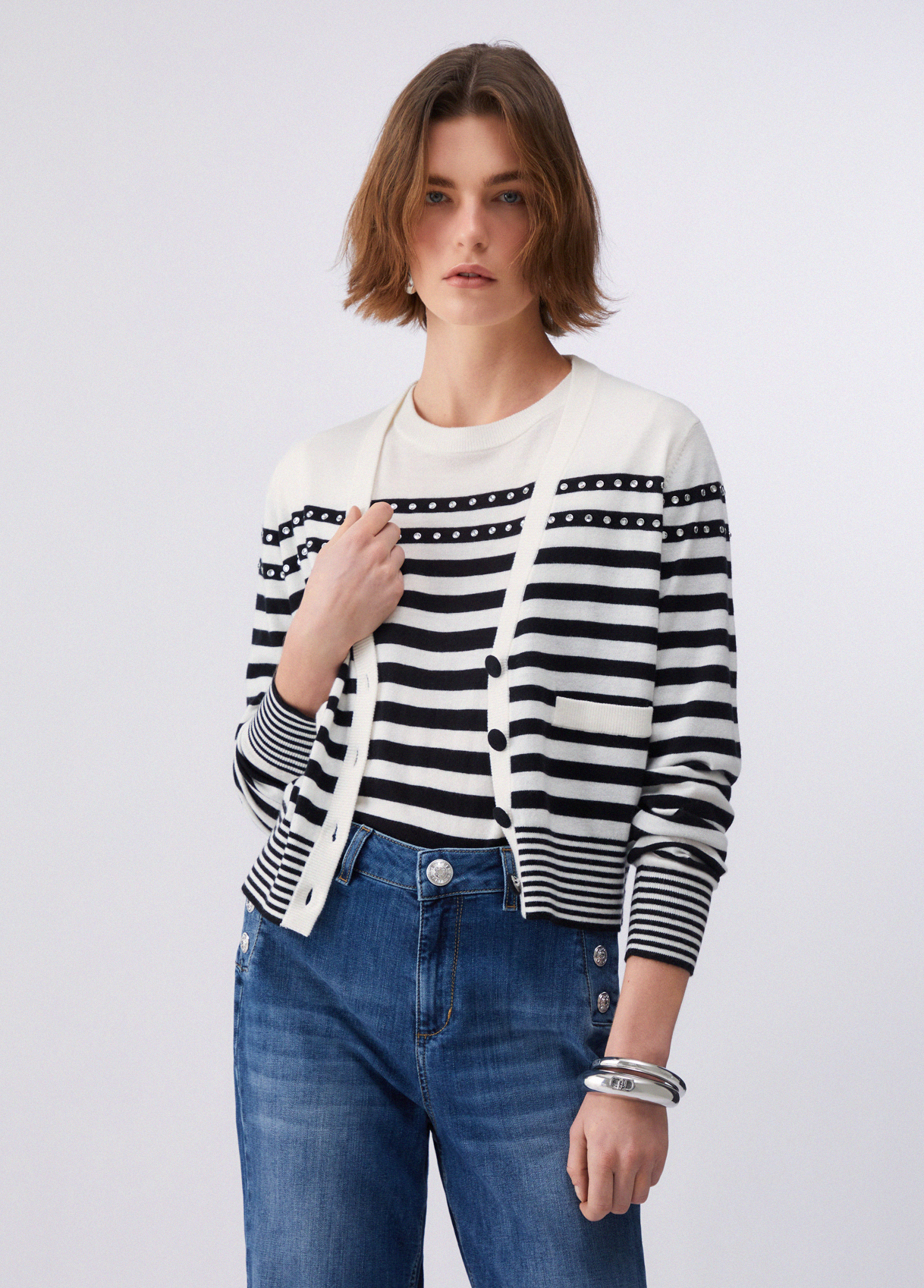Liu Jo Gestreifter Cardigan, Schwarz, XS