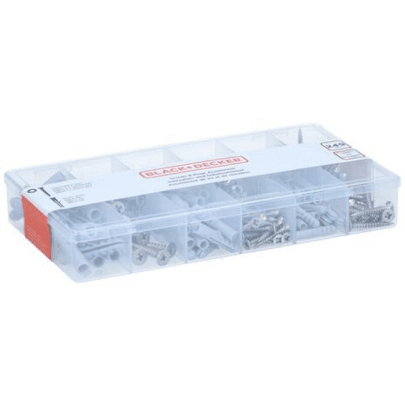 BLACK+DECKER chipboard schroef- en wandplugset - 249 stuks, nylon en staal
