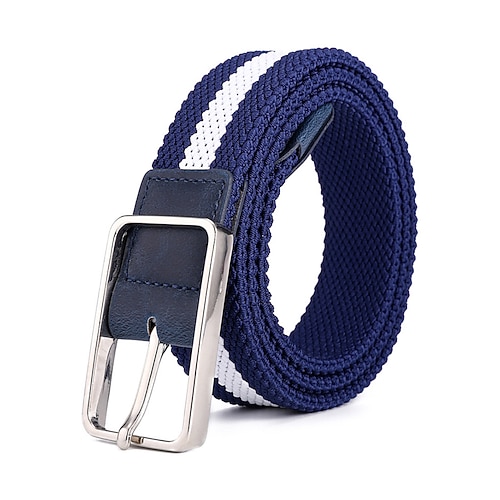 Cintura elastica intrecciata a righe da uomo con fibbia argentata, cintura elastica casual per il massimo comfort, disponibile in diverse opzioni di colore, regalo di Natale perfetto