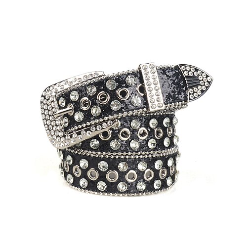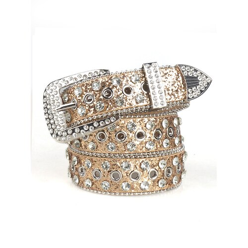 Cintura natalizia glitterata da donna: in similpelle con borchie di cristallo e fibbia argentata, design rosso festivo perfetto per gli outfit delle feste