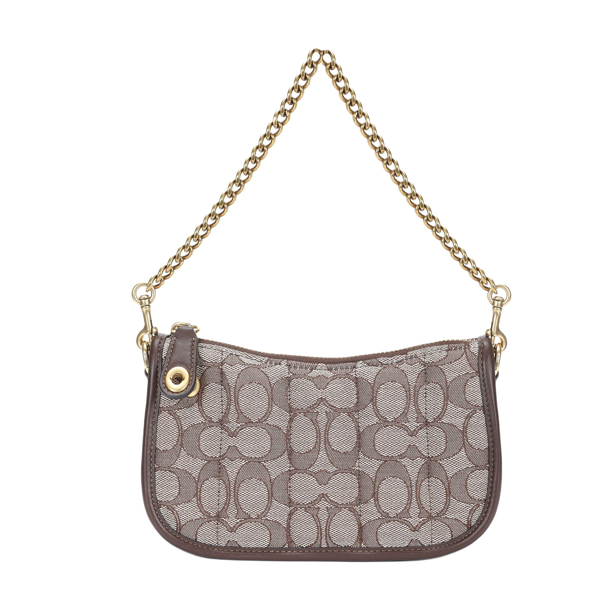 Coach Swinger 20 Zipper Chain Classic Monogram Canvas With Leather Shoulder Bag Women Shoulder Bag Brown C5418-B4S0M