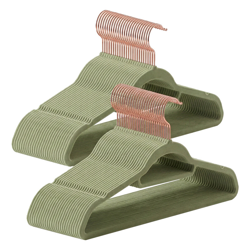 SONGMICSHOME Velvet Hangers, Set of 50 Clothes Hanger with Black Swivel Hook, Non-Slip, and Space-Saving, for Coat, Shirt, Dress, Pants, Tie, Green