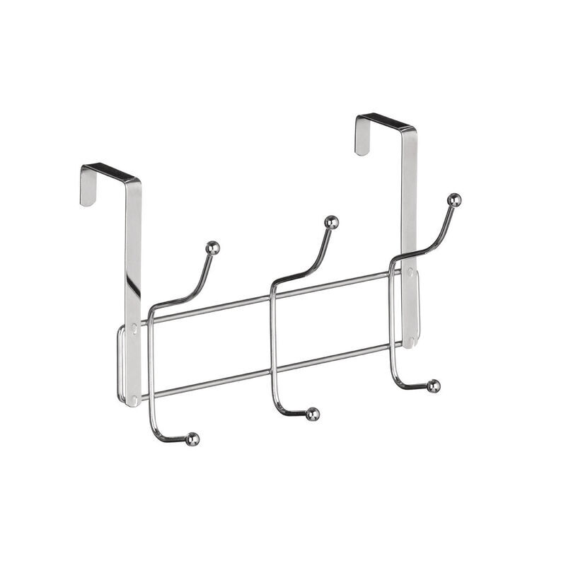 Essentials by Premier Over Door 6 Hook Hanger, Chrome Finish Rack With Multiple Hooks For Coats, Towels Or Bags