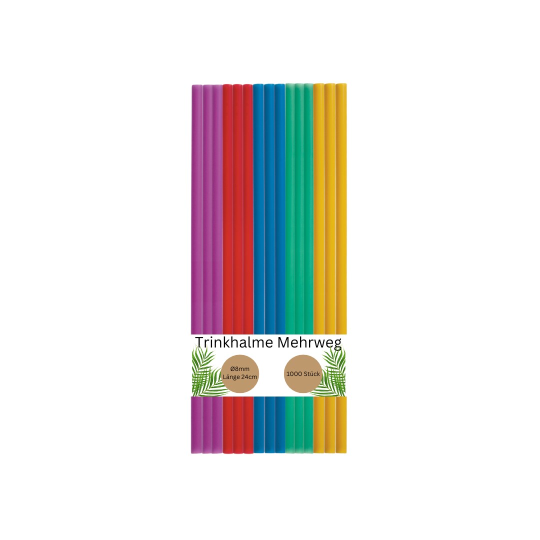 DeinPack 1000 bunte Mehrweg-Trinkhalme aus Kunststoff - Ø8mm Länge 240mm - Nachhaltig & Wiederverwendbar- Ideal für Cocktails & Drinks