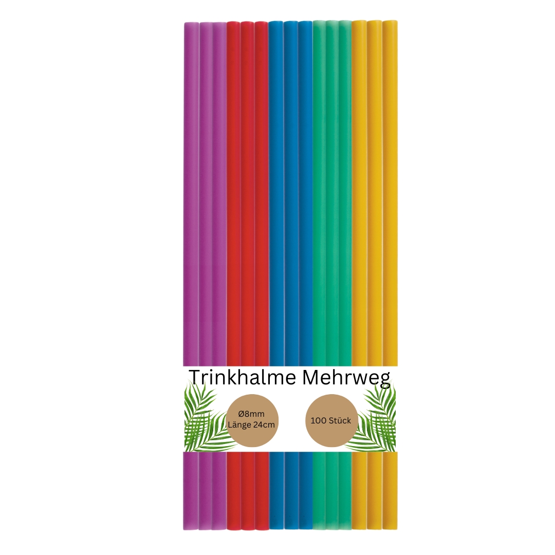 DeinPack 100 bunte Mehrweg-Trinkhalme aus Kunststoff - Ø8mm Länge 240mm - Nachhaltig & Wiederverwendbar - Ideal für Cocktails & Drinks -