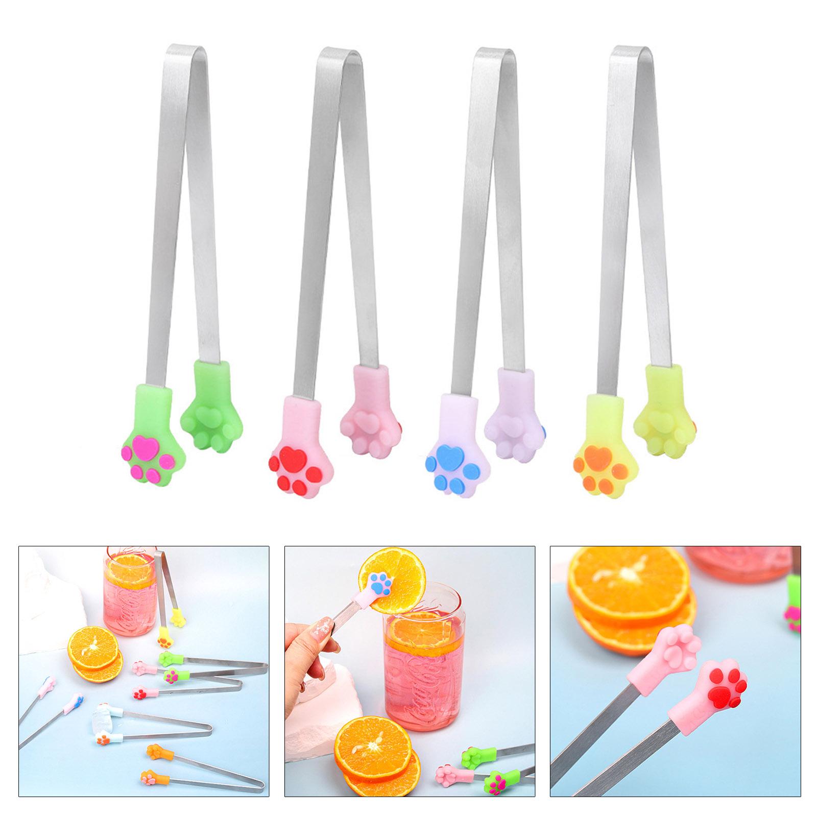 2Pcs Colorful Cats Paws Silicones Mini Tongs Perfect for Serving Snacks Sugar Candy Cookie Ice Cubes Kitchen Gadgets pink
