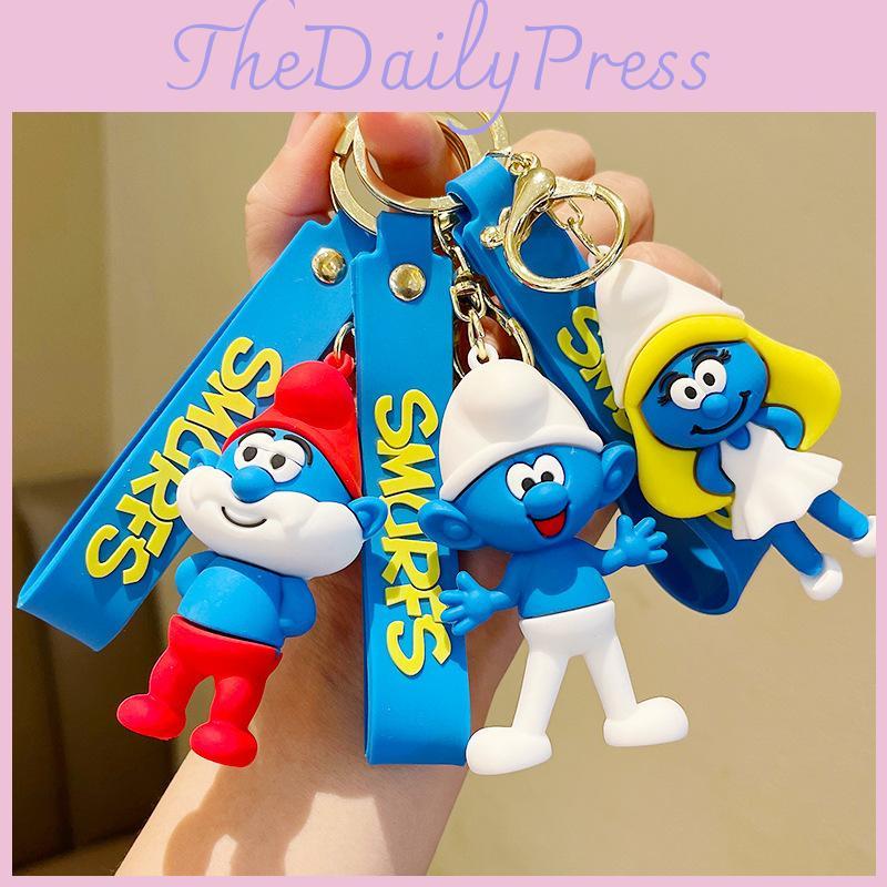 Smurfs Papa Jokey Smurf Smurfette Silicone Keychain Bright Colorful Cartoon Pendant