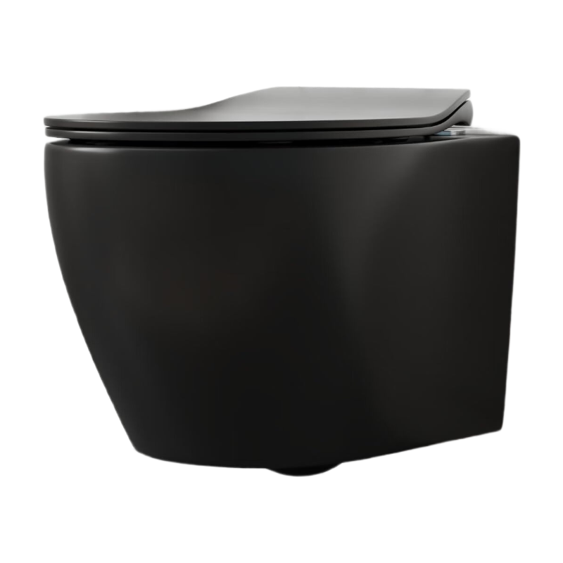 DeerValley Wall Hung Toilet Without Cistern, 1.6 GPF/1.1 GPF Double Flush Compact Rimless Ceramic Toilet Bowl with Soft Closed Seat - Black