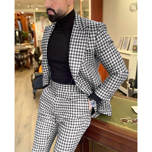 Uomo Matrimonio Completi in Tweed A lancia Nero Marrone A quadri Vestibilità su misura 2 pezzi Monopetto a un bottone
