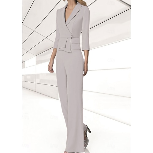 Per donna Completi Abiti da 2 pezzi Ospite di nozze Chiffon Elegante Manica 3/4 plissettata Lunghezza al pavimento Revers dentellati Monopetto