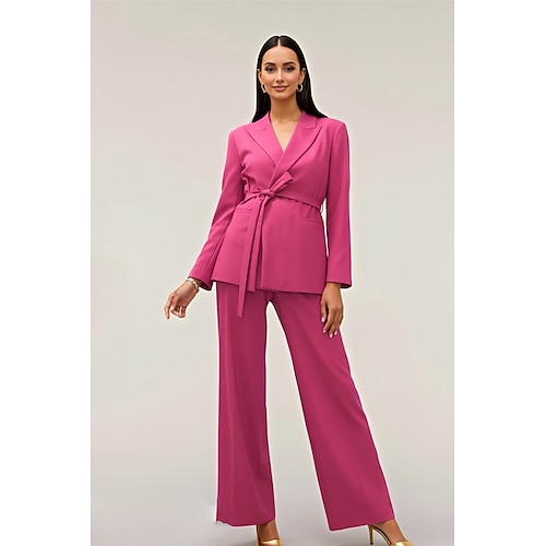 Per donna Completi Tuta Formale Ospite di nozze Crepe Elasticizzato Elegante Minimalista Casual Manica Lunga Lunghezza al pavimento Bavero sciallato