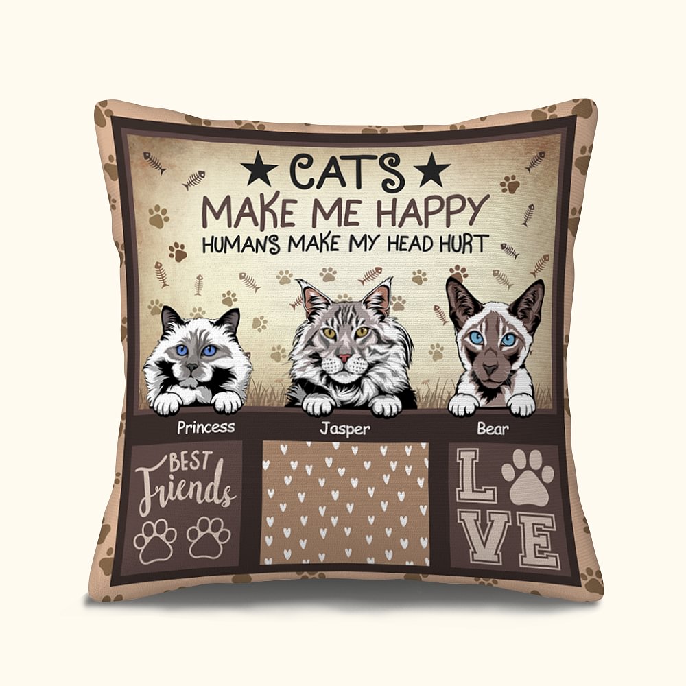 Personalizzato Cat Lover Throw Pillow Cover Cat Make Me Happy Humans Make My Head Hurt Gift For Cat Lover Pet Lover Sofa Home Decor