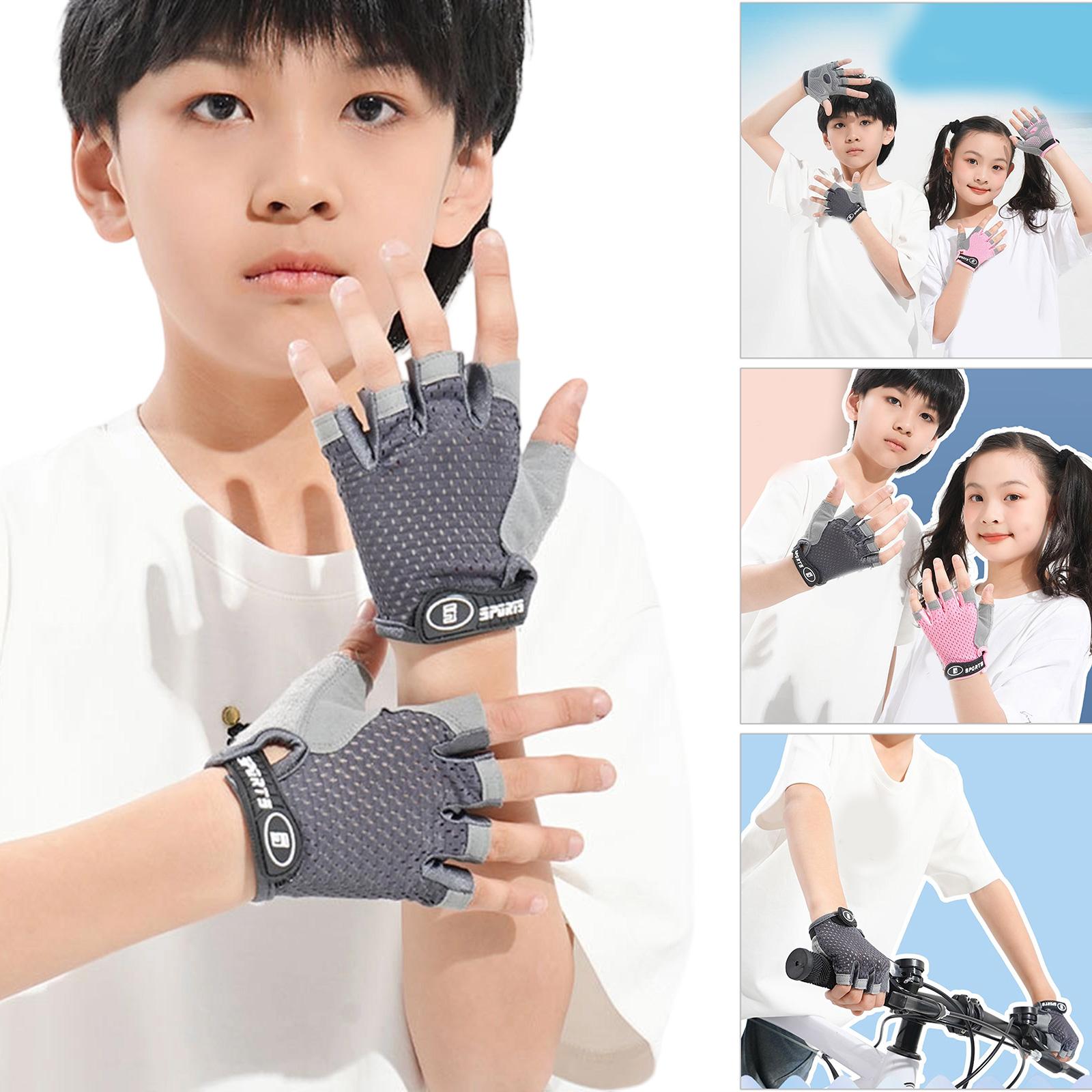 Children Half Finger Cycling Gloves Breathable Sport Gloves With Protective Palm For Cycling Scooter Outdoor Activity pink