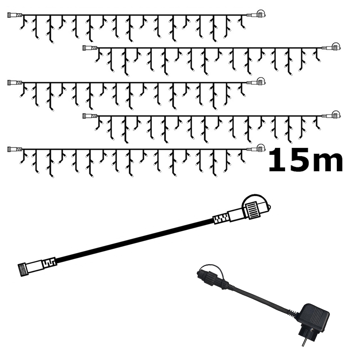 StarTrading SYSTEM 24 KOMPLETT SET 15m Lichtervorhang Eisregen Icicle f. Dachrinne