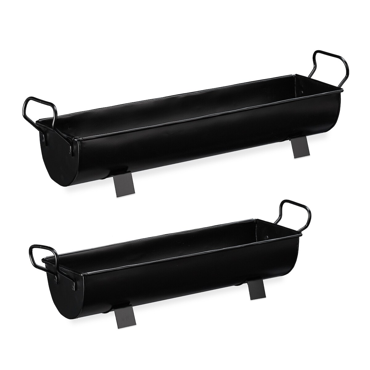 Relaxdays Blumenkasten Dachrinne, 2er Set, Garten & innen, Vintage Design, Eisen, Metallwannen zum Bepflanzen, schwarz
