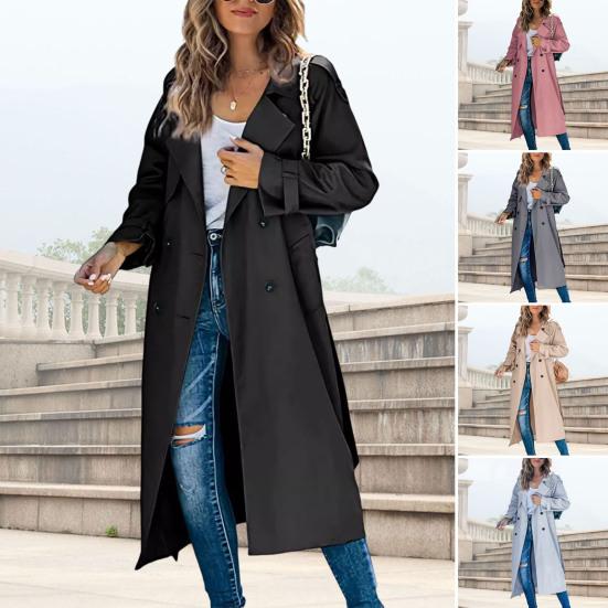 Women's Trench Coat Double-Breasted Classic Lapel Long Overcoat Windproof Autumn Spring Outerwear Jacket for Work Travel cm dark gray