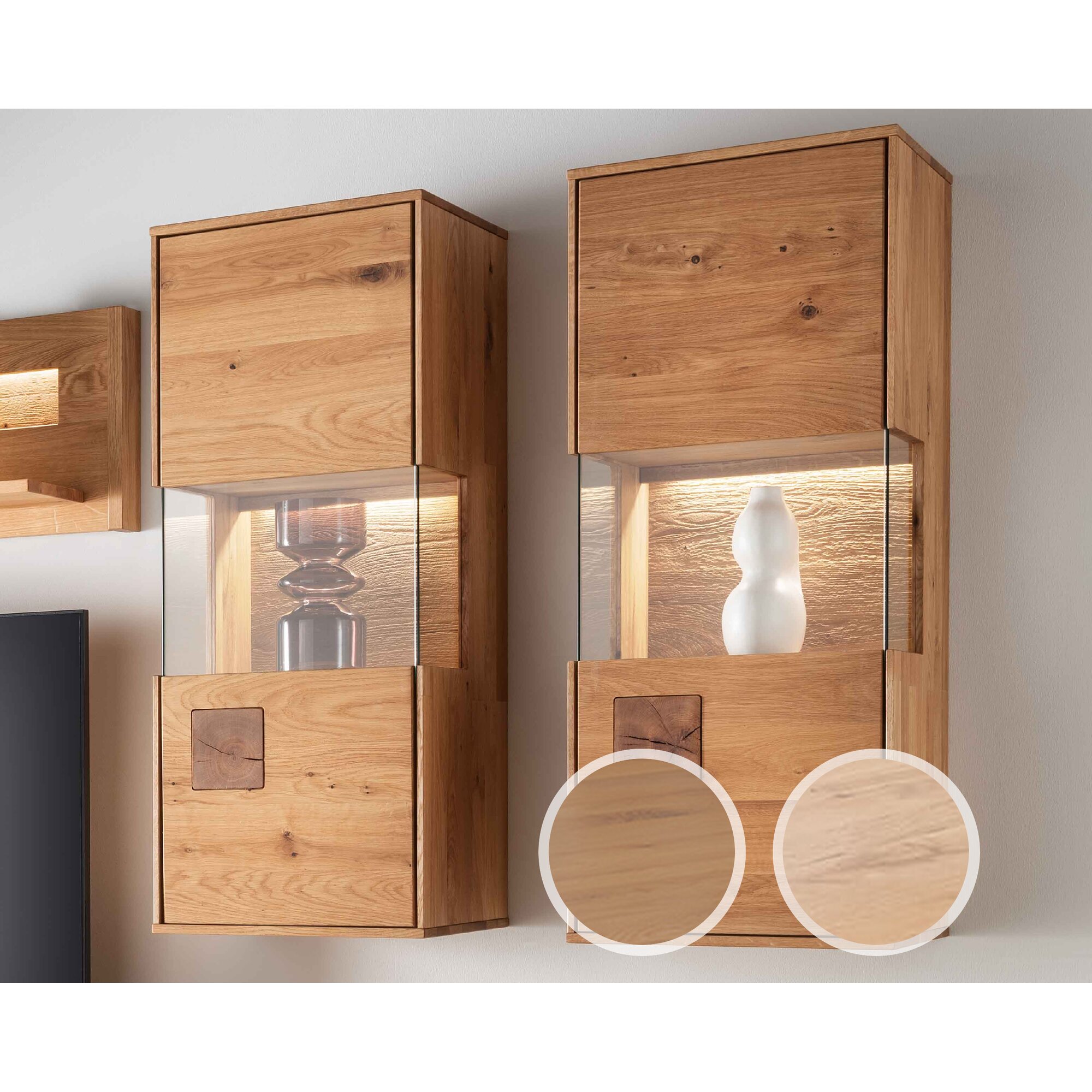 Massivholz »Davos« Vitrine Wildeiche bianco geölt / Anschlag rechts / mit Beleuchtung