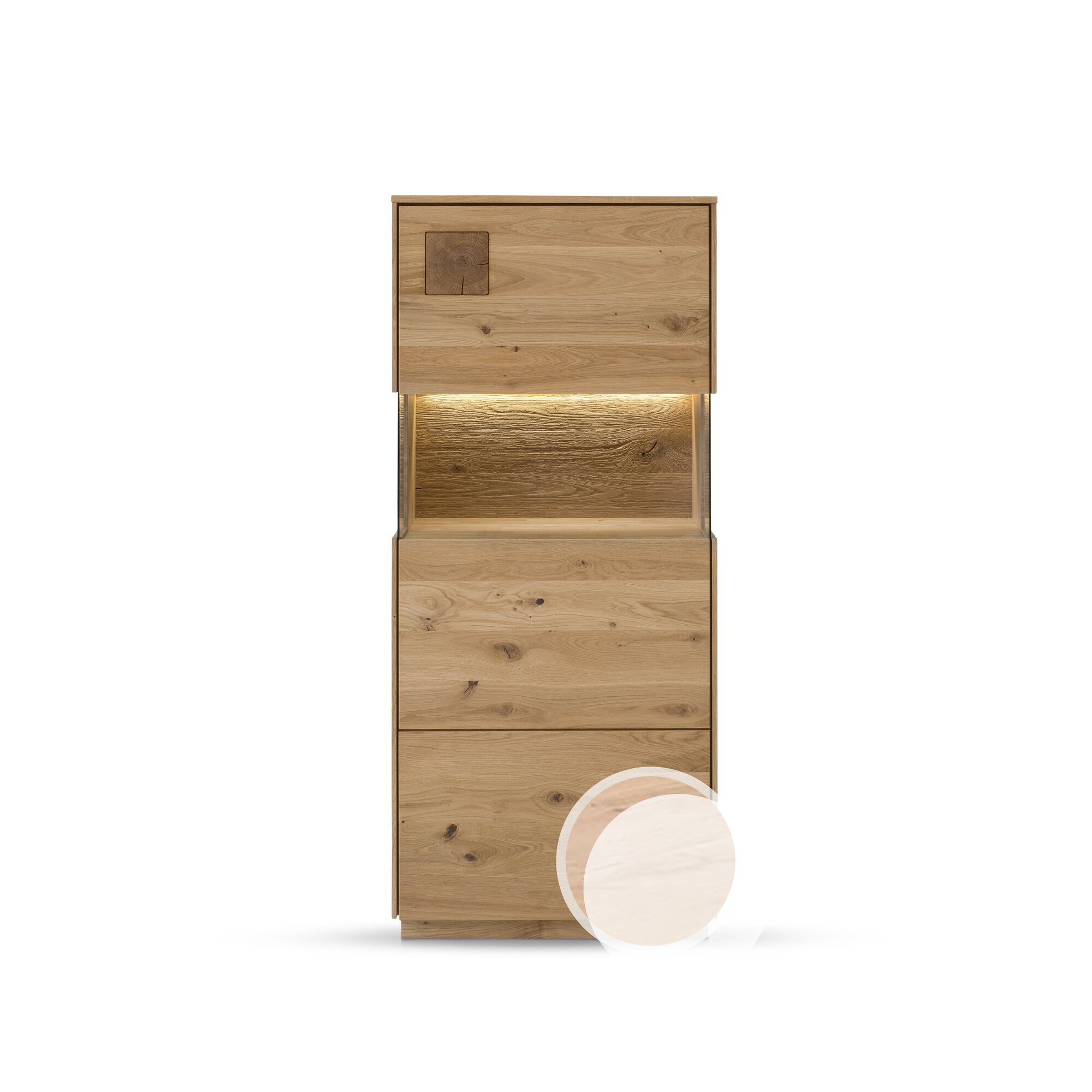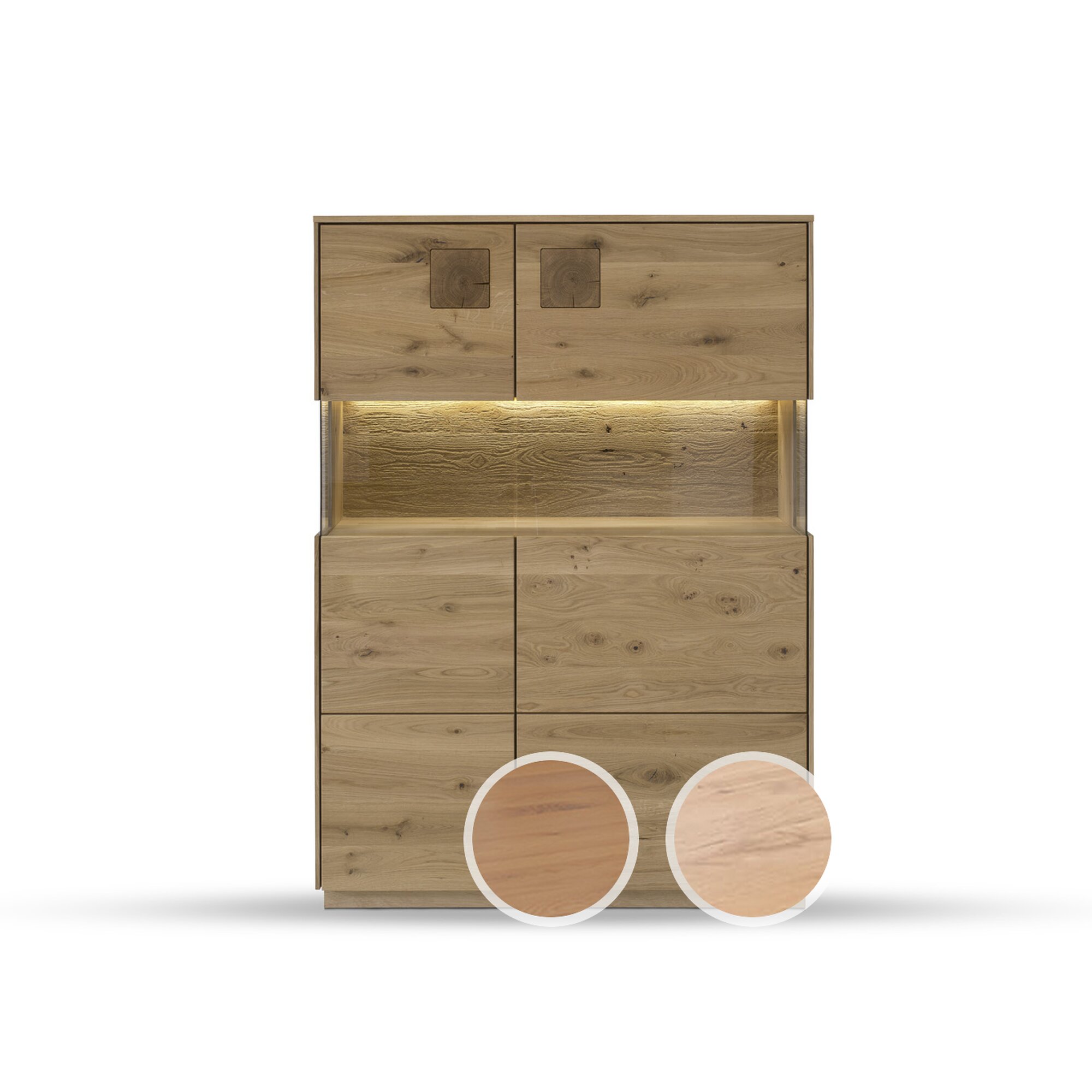 Massivholz »Davos« Highboard II Wildeiche natur geölt / mit Beleuchtung