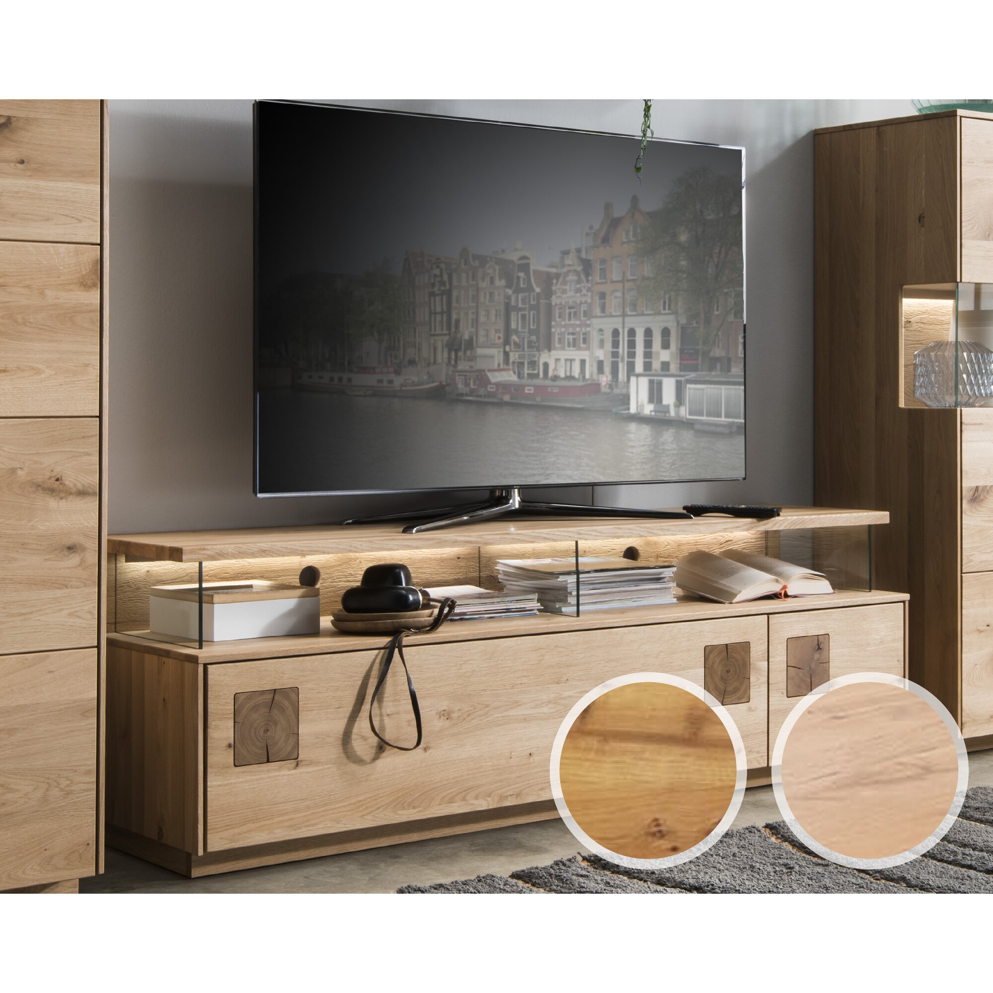 Massivholz »Davos« TV-Board groß Wildeiche natur geölt / mit Beleuchtung