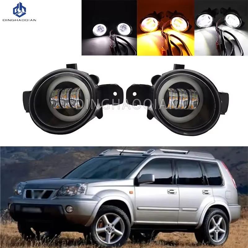For Nissan X-Trail T30 2001-2006 1Pair Angel Eye Fog Light Car Front Bumper LED Fog Lamp Daytime Running Light DRL 3000LM 12V