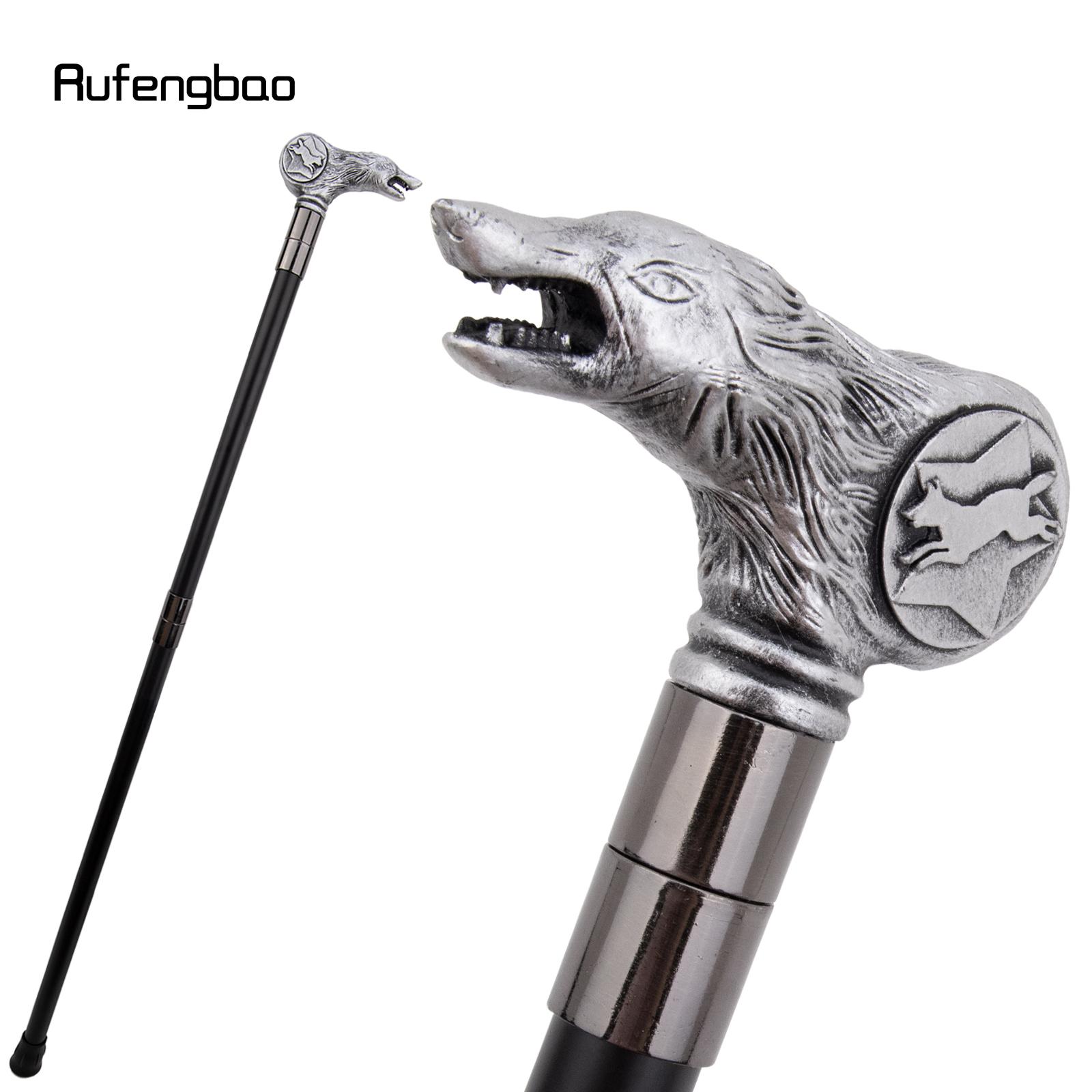 Silver Resin Wolf Head Walking Cane Fashion Decorative Steel Stick Gentleman Elegant Cosplay Cane Knob Crosier 92cm