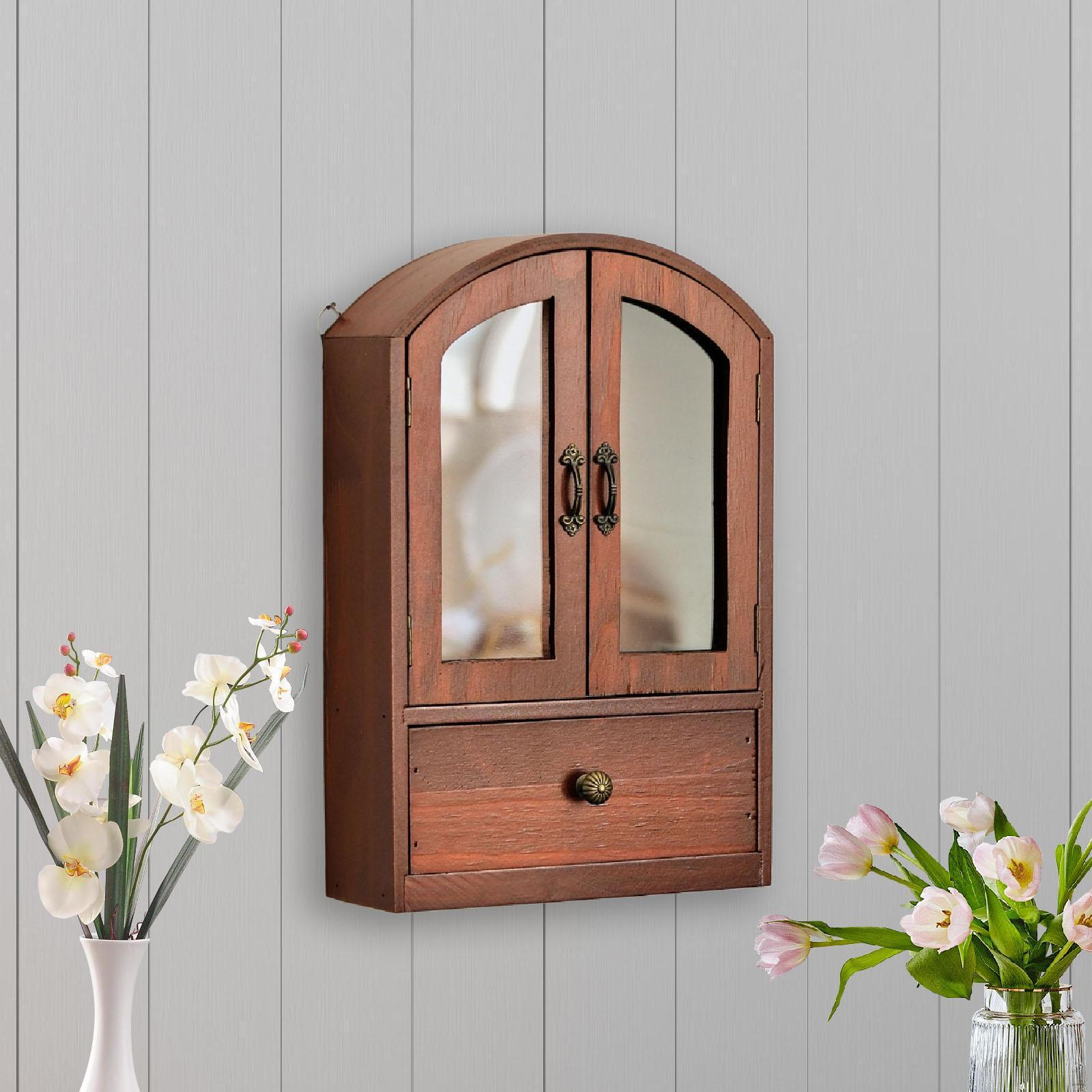 Desk Storage Cabinet, Cosmetic Organizer, Space Saving, Skincare Wooden Shelf with Drawer brown