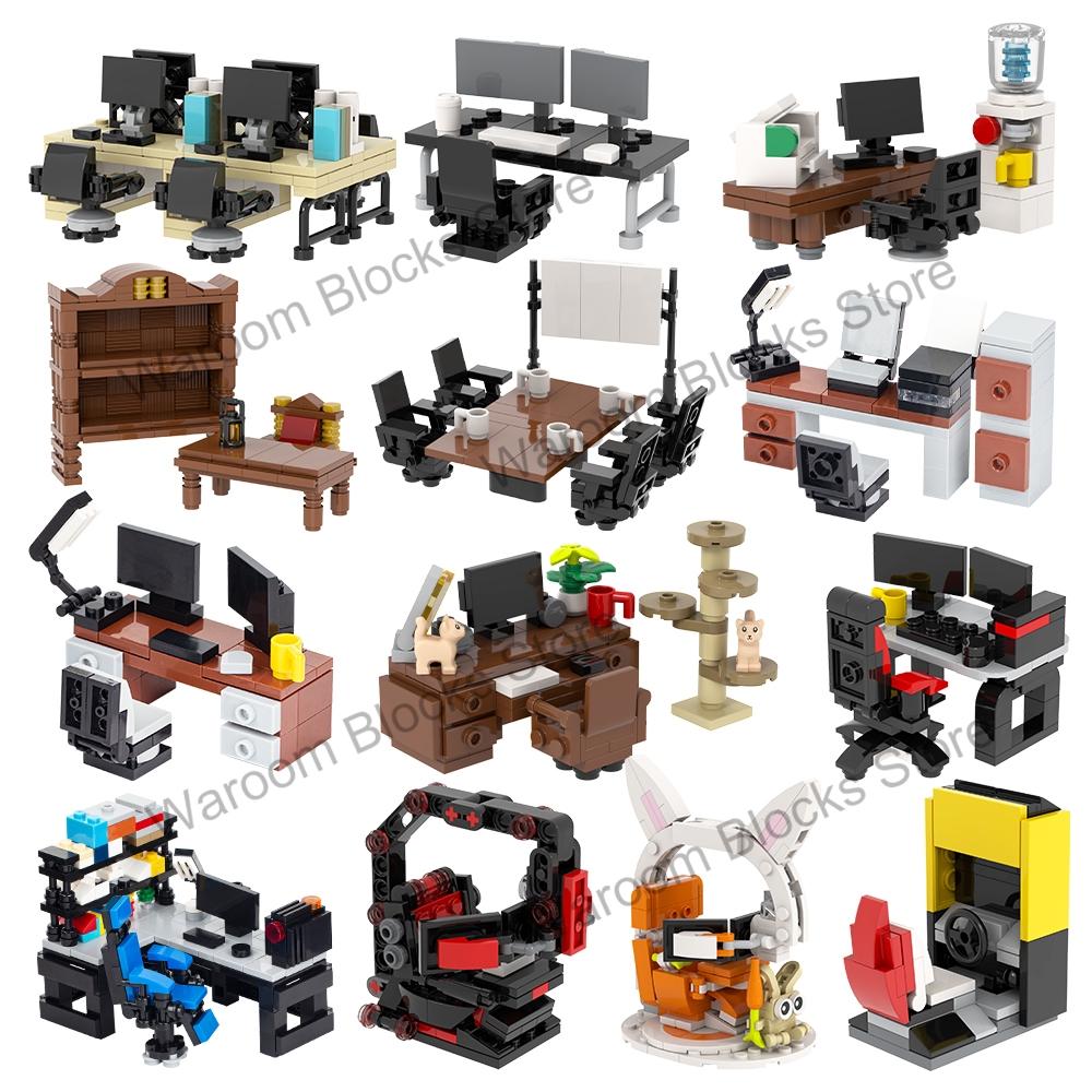MOC City Bricks Computer Desks Furniture Gaming Office Compatible Figures Building Blocks Creative Toys For Children Adults Gift