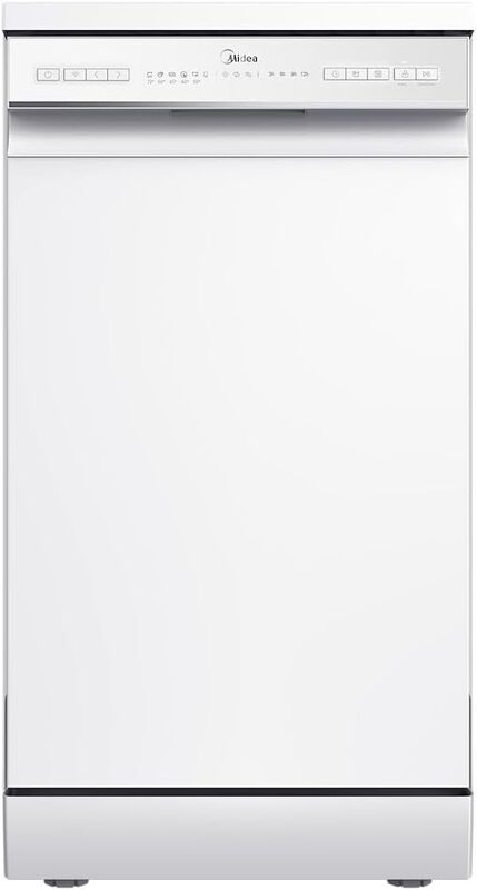 Midea MDWEF1034C(W)-WG-UK 45cm Freestanding Slimline Dishwasher - 10 Place Settings - White - E Rated
