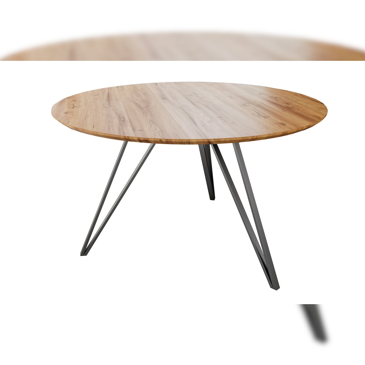 Möbelliebling Runder Esszimmertisch massiv Eiche Schweizer Kante 110 cm Hairpin silber DREAM
