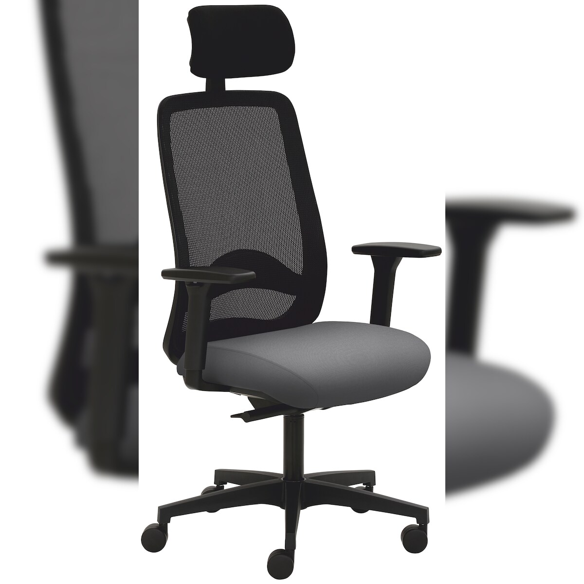 Drehstuhl MAYER SITZMÖBEL "2228", grau (grau, schwarz), B:70cm H:123cm T:63cm, Stühle, Drehstuhl, 3D Armlehnen, Kopfstütze