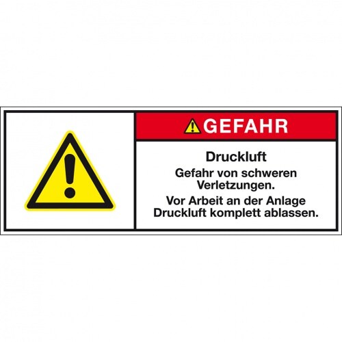 Aufkleber I Produktsicherheitsschild Gefahr - Druckluft, RoHS konform, Folie, 100x35mm, ISO 3864-2