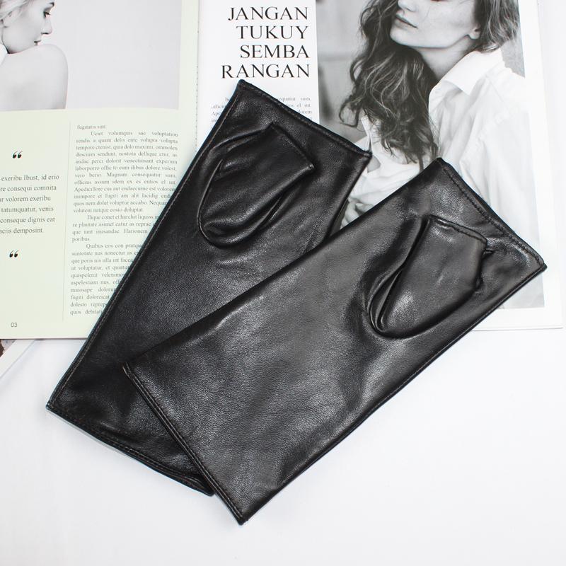 Dames Vingerloze Handschoenen Zwart Echt Leer Mode Schapenvacht Buis Nieuw Product Gelanceerd cm