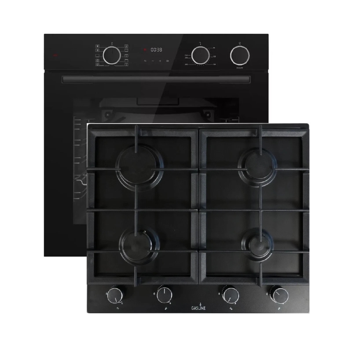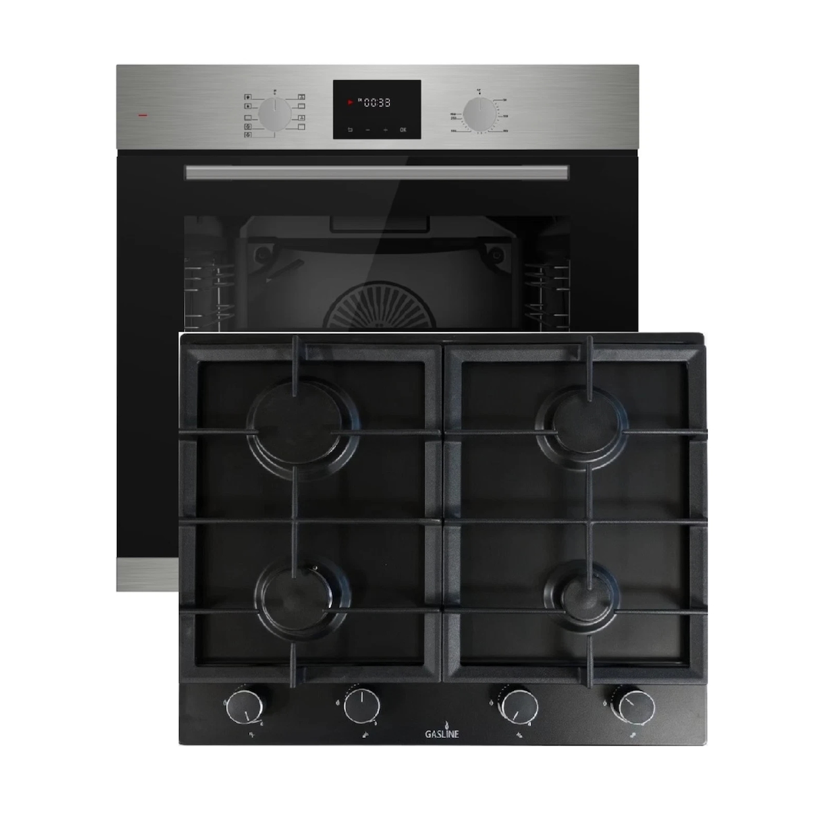 Böhme Einbauherdset mit Elektrobackofen HB60F78PPX + Gasline Gaskochfeld GAG60GLG 60cm Schwarz Glaskeramik mit 4 Brennern