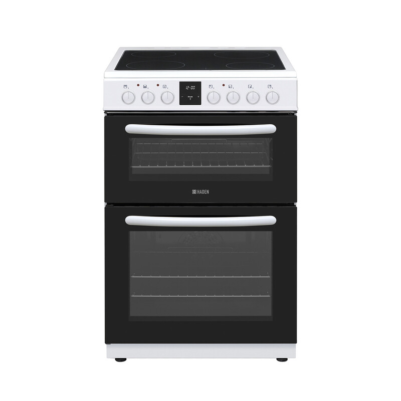 Haden HE65DOMW 60cm Ceramic Electric Cooker With Double Oven, White, A Rated