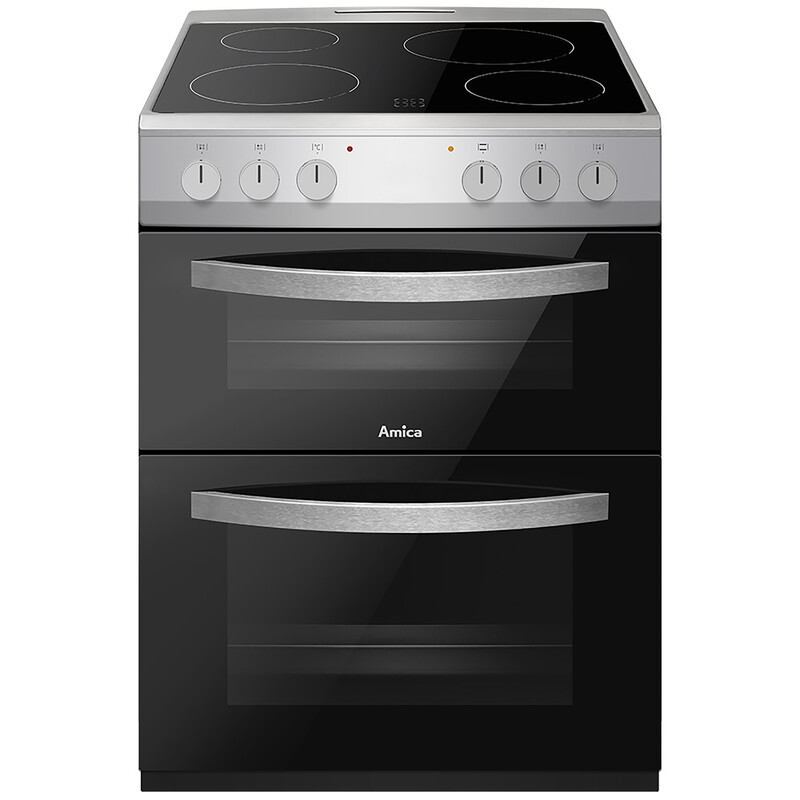 Amica AFC602SS 60cm Ceramic Electric Cooker with Double Oven, Stainless Steel, A Rated