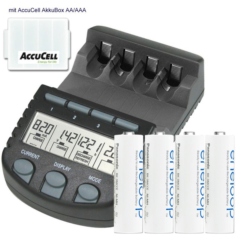 AccuCell Schnelladegerät mit LCD-Display + 4x Panasonic eneloop Standard AA Mignon (ehem. Sanyo eneloop Standard) 2000mAh