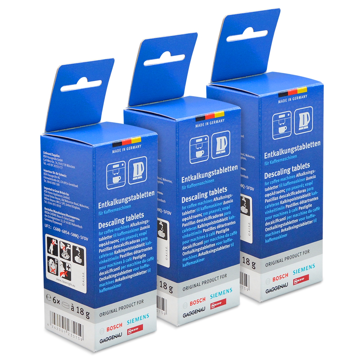 Entkalkertabletten Bosch 00311556 3 Packungen x6 Entkalker für Kaffeemaschine