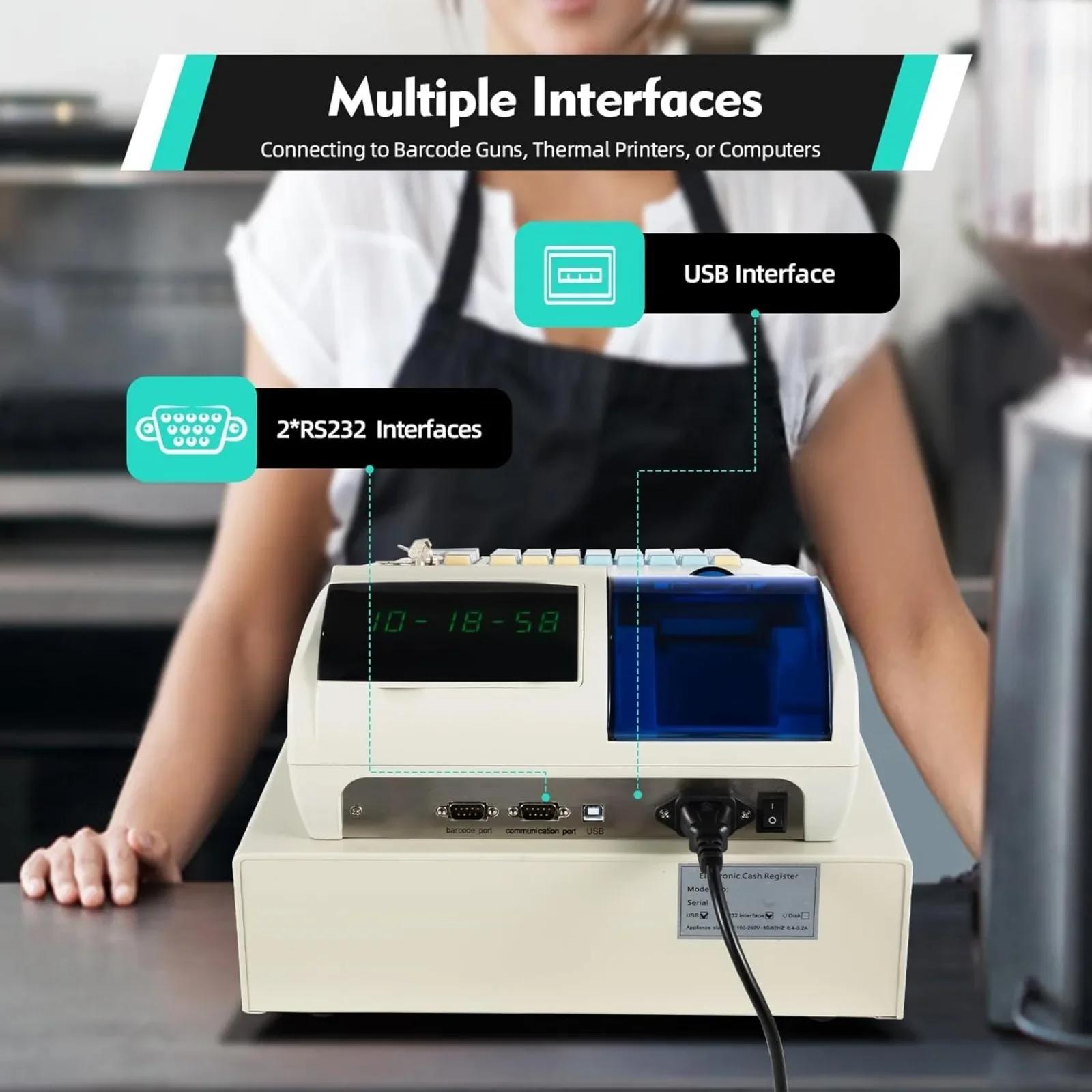Cash Register 48-Key LED Display Electronic Cashier Cash Management POS System High-Speed Thermal Printing Digital Cash Register white
