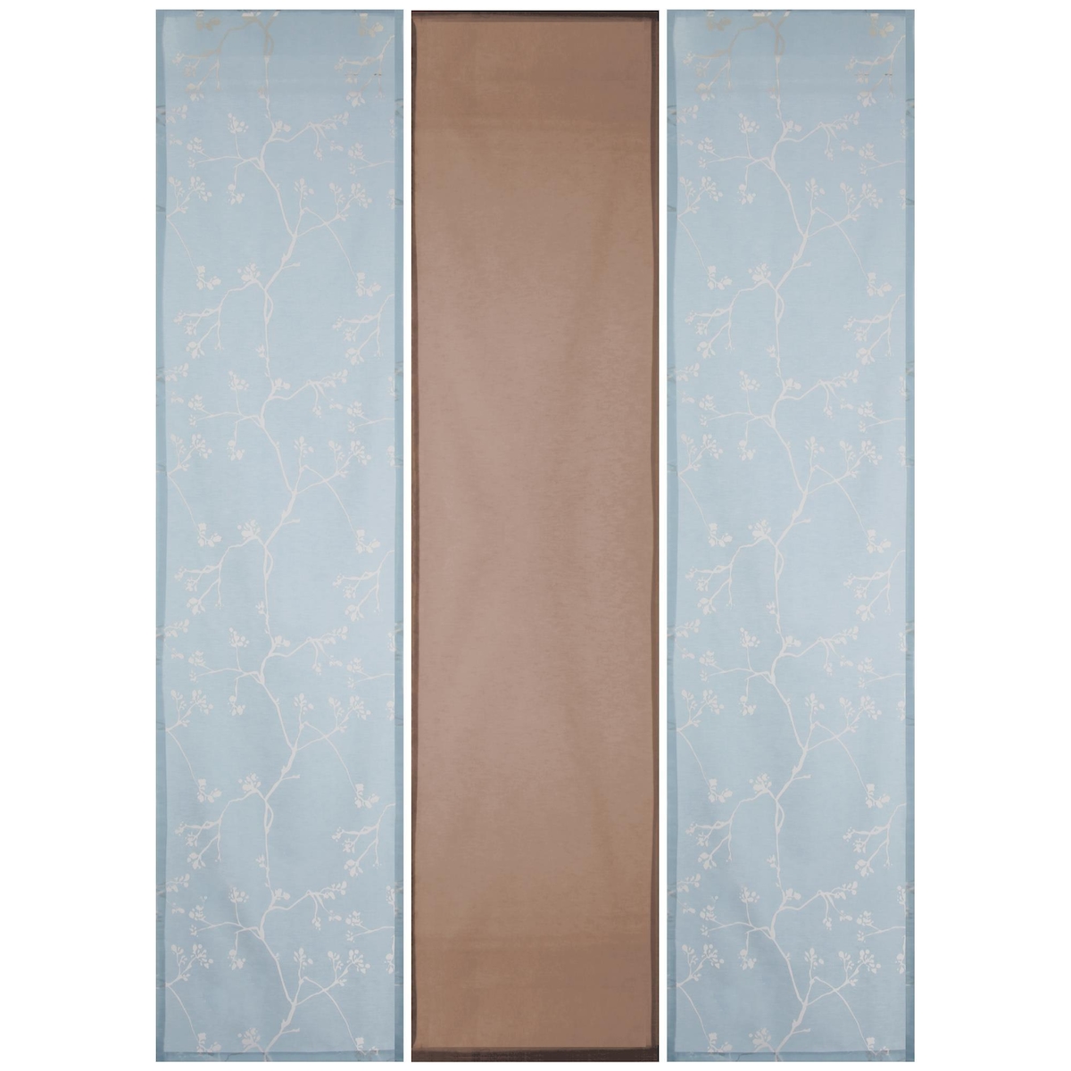 Bestlivings Schiebegardine Elena 3er Set Ausbrenner (200/262/210) ohne Zubehör Hellblau-Braun