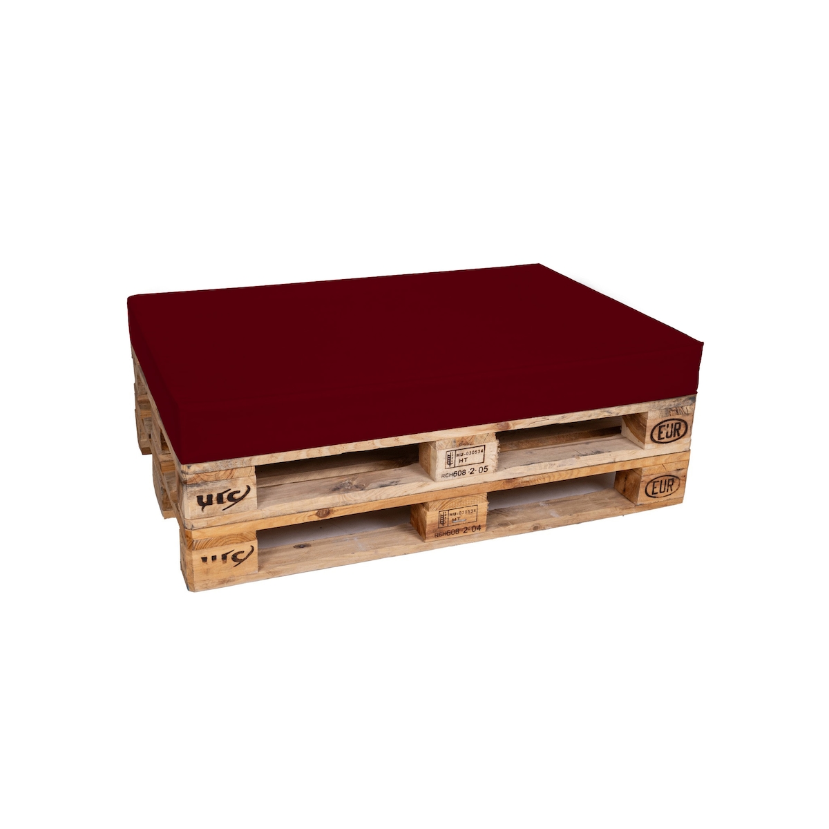 TexDeko Palettenkissen für Europalette 120x80x12cm Wasser-& Schmutzabweisend, abnehmbarer Bezug mit Reißverschluss, waschbar (Bordeaux)