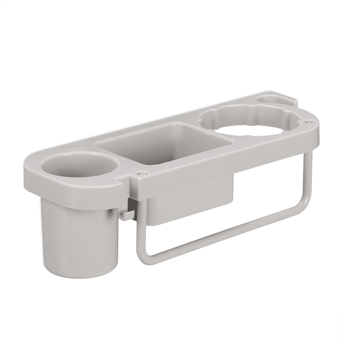 Relaxdays Föhn Halterung ohne Bohren, Kunststoff, mit Kabelhalter & Ablagen, Föhnhalter Wand, HBT: 9x30x10,5 cm, grau