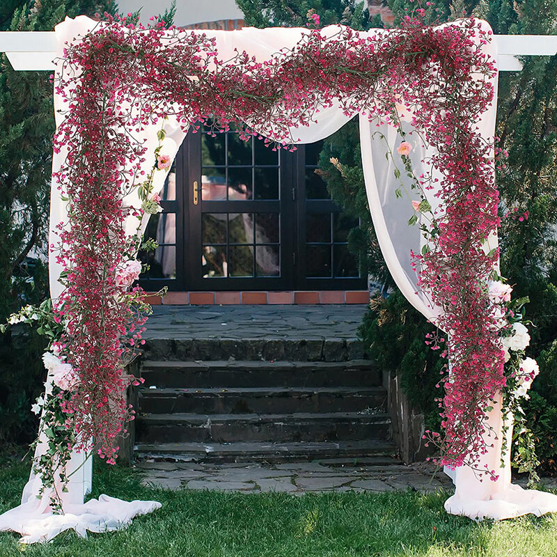 Yuejia 2Pcs 5.6ft/170cmArtificial Flowers Faux Outdoor Plants Artificial Petunias For Outdoors Fake Petunias Plants Hanging Flower Patio Decor Outside Basket Realistic Silk Plant