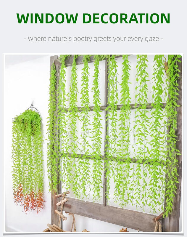 Yuejia 12Pcs 3.5ft/1mArtificial Hanging Willow Vine Fake Greenery Plants for Indoor/Outdoor Decor, Wedding & Photography - Red Tail Design