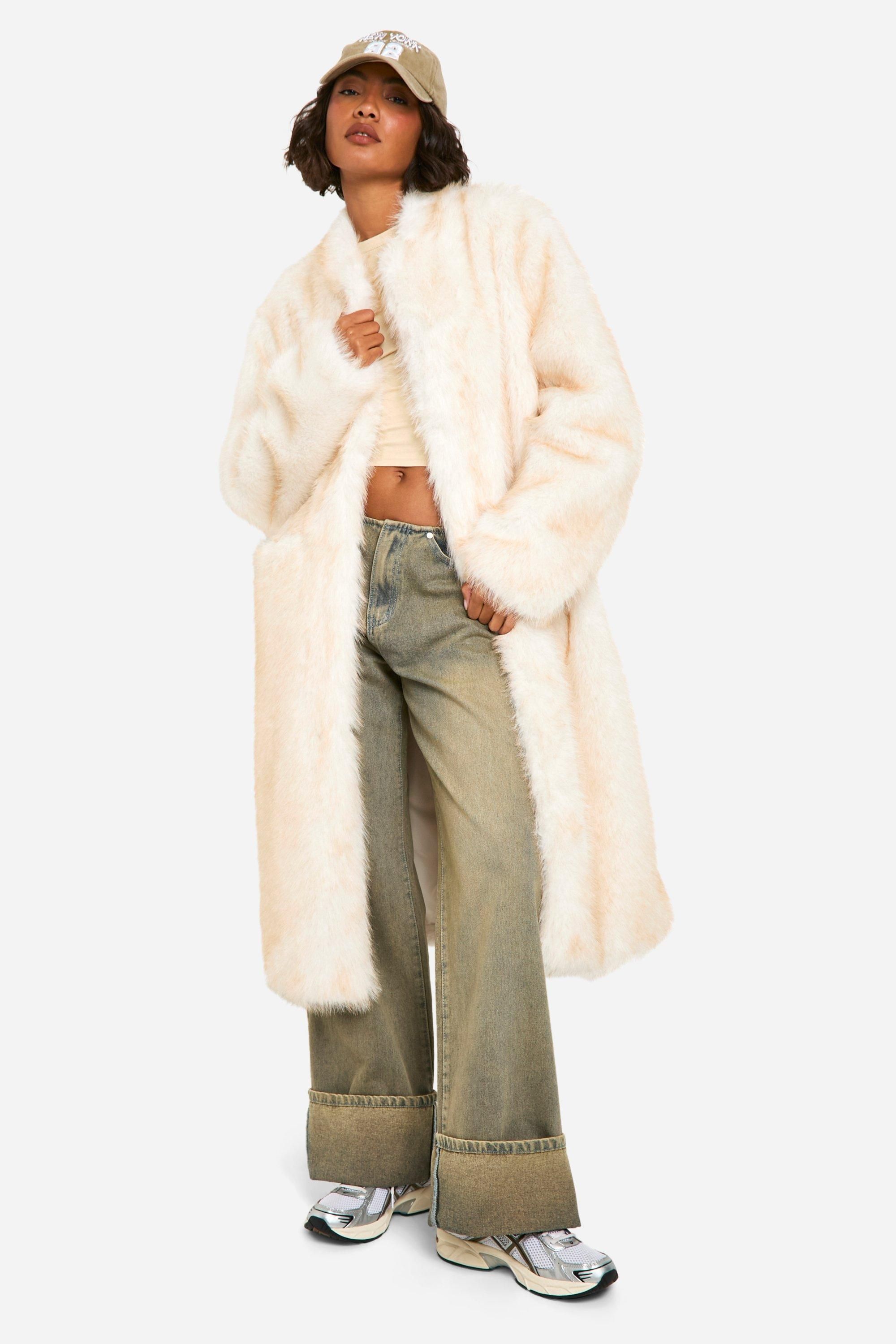 Boohoo Womens Vintage Look Faux Fur Maxi Jacket - Natural - Size 12 UK | Boohoo Sale | Discount Designer Brands