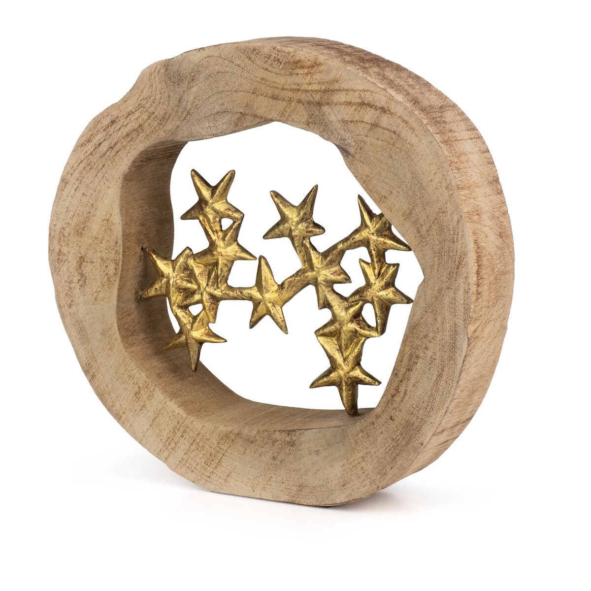 Moritz Dekofigur Sternenhimmel in Gold aus Mangoholz und Aluminium 27,5cm Holzfigur mit goldenen Sternen Handarbeit Unikat für Tisch Kommode oder Fensterbank