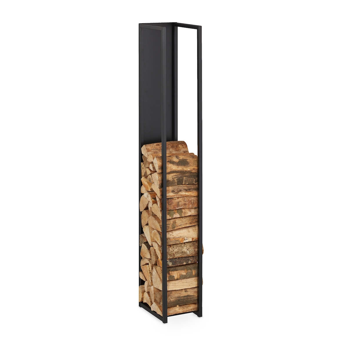 Relaxdays Kaminholzregal Metall, Brennholzregal hoch, für Feuerholz, Stapelholz, Brennholz, HBT: 157x23,5x30 cm, schwarz