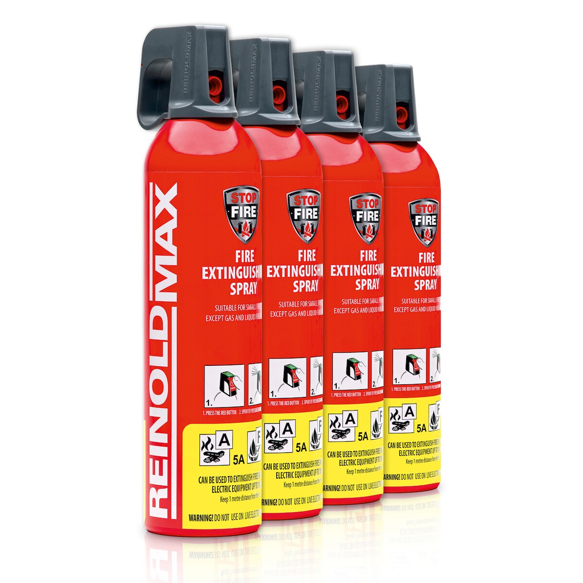 XENOTEC Premium Feuerlöschspray – 4er Set - 750ml – Stopfire – Autofeuerlöscher – REINOLDMAX – wiederverwendbar – geeignet für Fettbrände – 4 x 750g